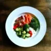 Grillowany łosoś: Skrop łososia sokiem z cytryny, posyp solą i pieprzem, grilluj przez 6-8 minut z każdej strony.